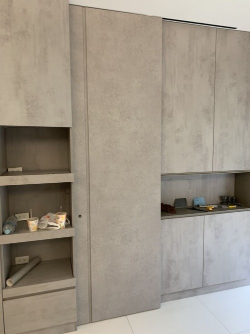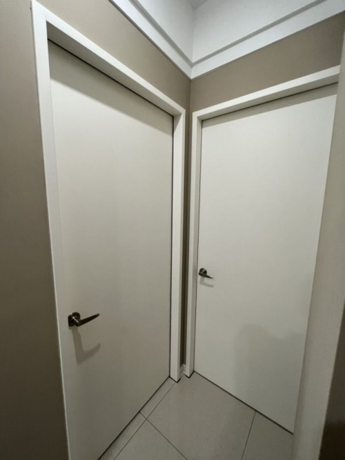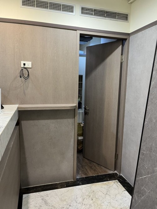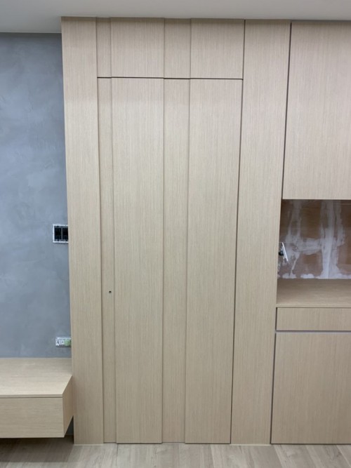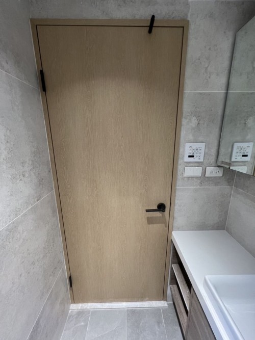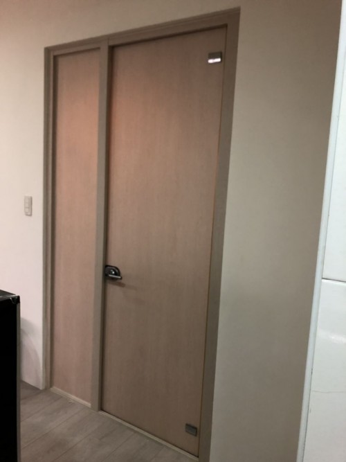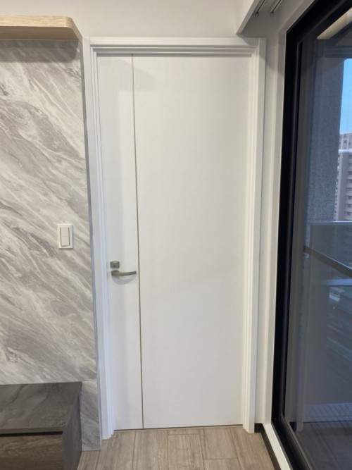 門 SPW42 (柚木摩卡木紋)、門 PTW14 (北歐淺灰米木紋)、門框 PTW14 (北歐淺灰米木紋)