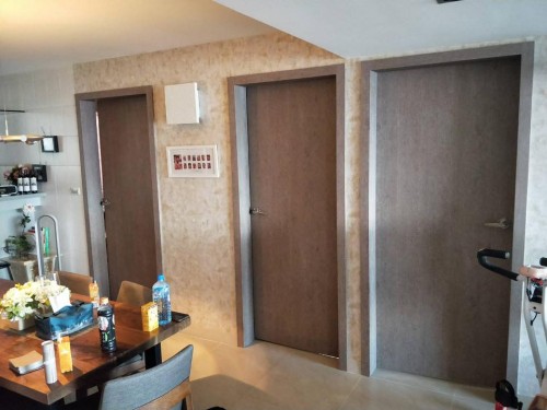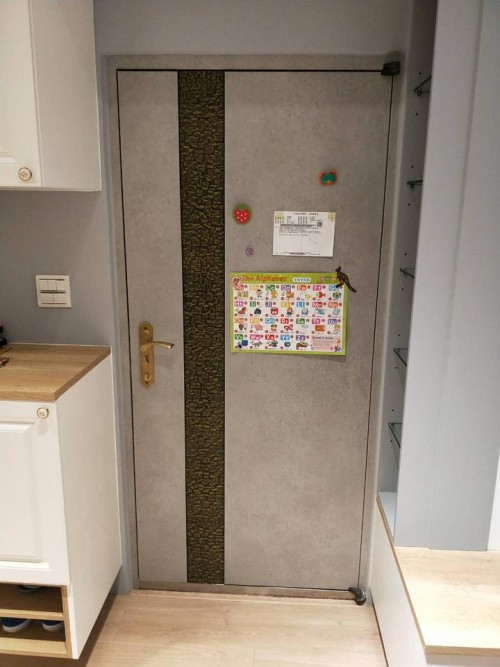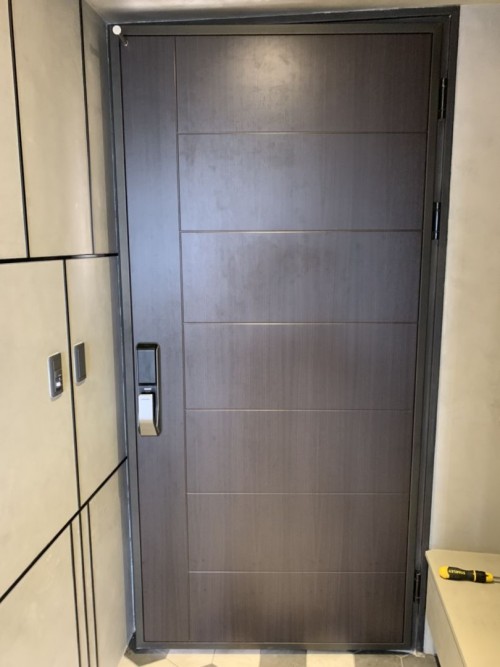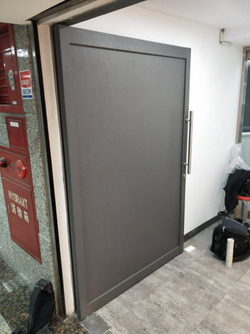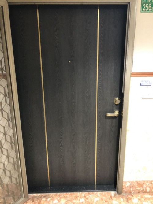 大門 W705 (黑木紋)、門框 RM009 (拉絲黑)